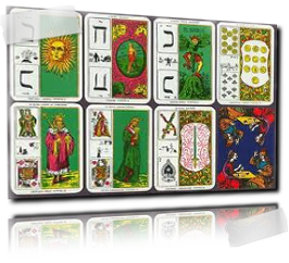 I Tarocchi sono un tipo di carte che nasce in Europa, tra la fine del Medioevo e il Rinascimento. Formati da 78 carte dette anche "lame", sono suddivisi in 2 sottogruppi: il primo è di 22 carte illustrate con figure simboliche, anticamente chiamate Trionfi, e solo dal XIX secolo, Arcani maggiori, l'altro in 56 carte suddivise in 4 serie, gli Arcani minori che, a seconda dei paesi possono mutare tipo di insegna. Gli Arcani Minori includono quattro figure: fante, cavallo, donna, re, e 10 carte numerali.
